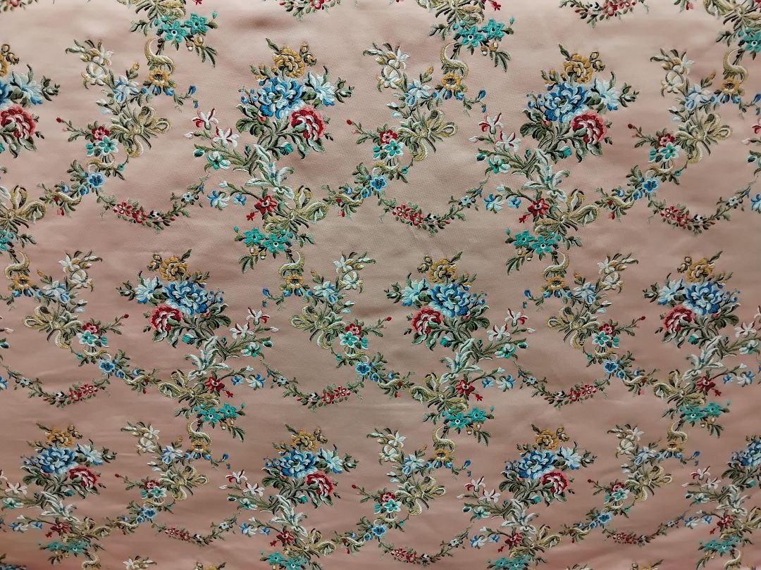 5,5 m. Tela valenciana alg/pes Luxana salmone. Ancho 130 cm.